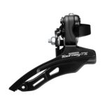 The SHIMANO TOURNEY TZ500 front derailleur is compatible with 3×6 speed drivetrains and 42-34-22T chainrings.
